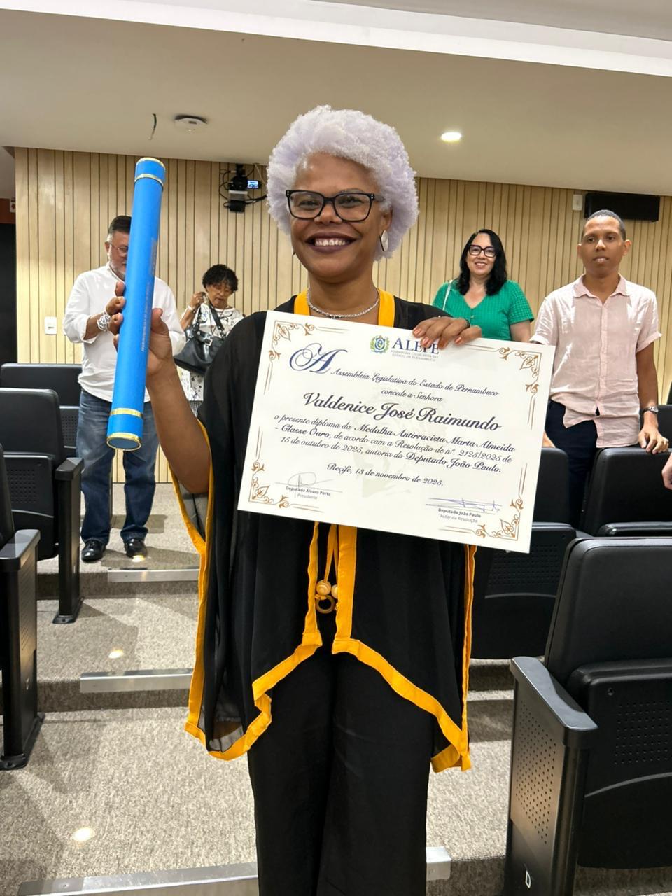 Assembleia Legislativa de Pernambuco homenageia Valdenice José Raimundo com Medalha Marta Almeida por contribuições no combate ao racismo