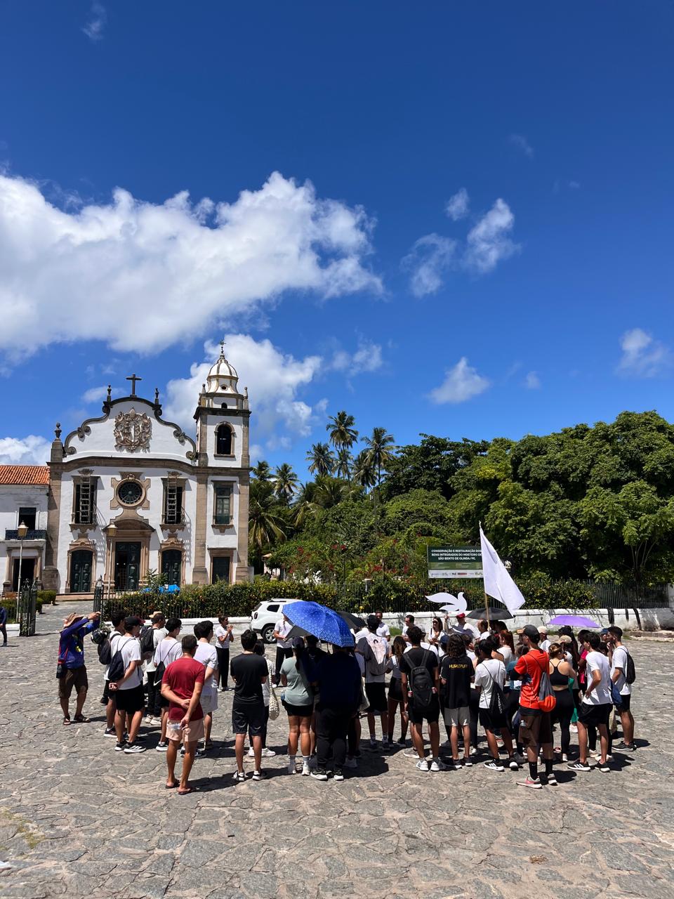 O momento aconteceu no dia 11 de abril, com início na capela da UNICAP e teve seu término em frente ao Mosteiro de São Bento em Olinda, com o tradicional toque do Grupo de Capoeira Chapéu de Couro da UNICAP espalhando o axé que significa energia, força vital, paz.