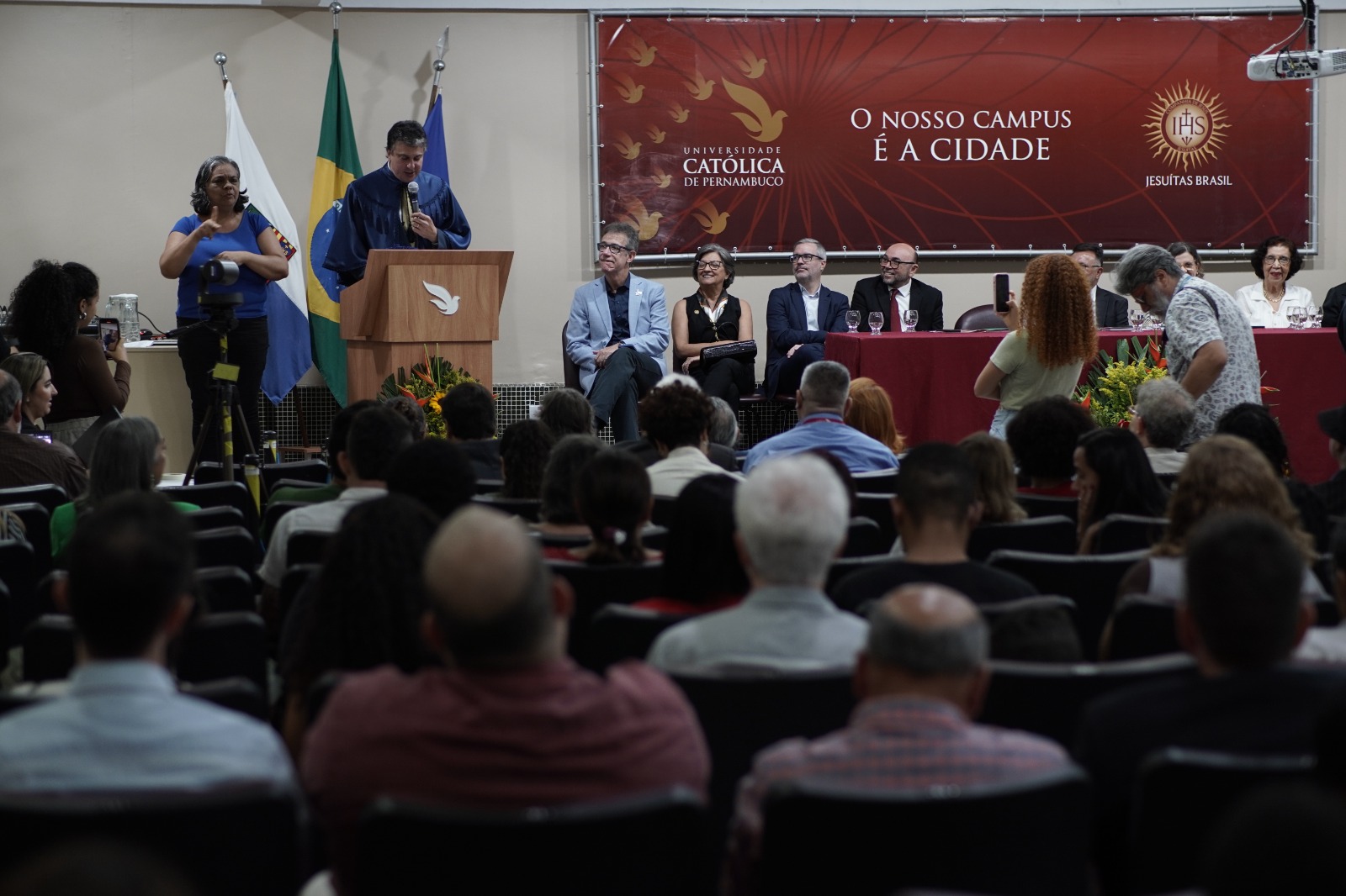 A mesa de honra dos trabalhos foi composta por Padre Pedro Rubens Ferreira, Reitor da Unicap; Teresa Leitão, senadora da República; Degislando Nóbrega, Pró-reitor de Graduação; Victor Marques, vice-prefeito do Recife representando o prefeito João Campos; Gilson José Monteiro Filho, secretário estadual de Educação representando a governadora Raquel Lyra; Márcia Ângela Aguiar, presidente da Fundação Joaquim Nabuco (Fundaj); Maria do Socorro de Mendonça Cavalcanti, reitora da Universidade de Pernambuco (UPE); Maria José de Sena, reitora da Universidade Federal Rural de Pernambuco (UFRPE); e Arthur Chioro, presidente da Empresa Brasileira de Serviços Hospitalares (Ebserh).