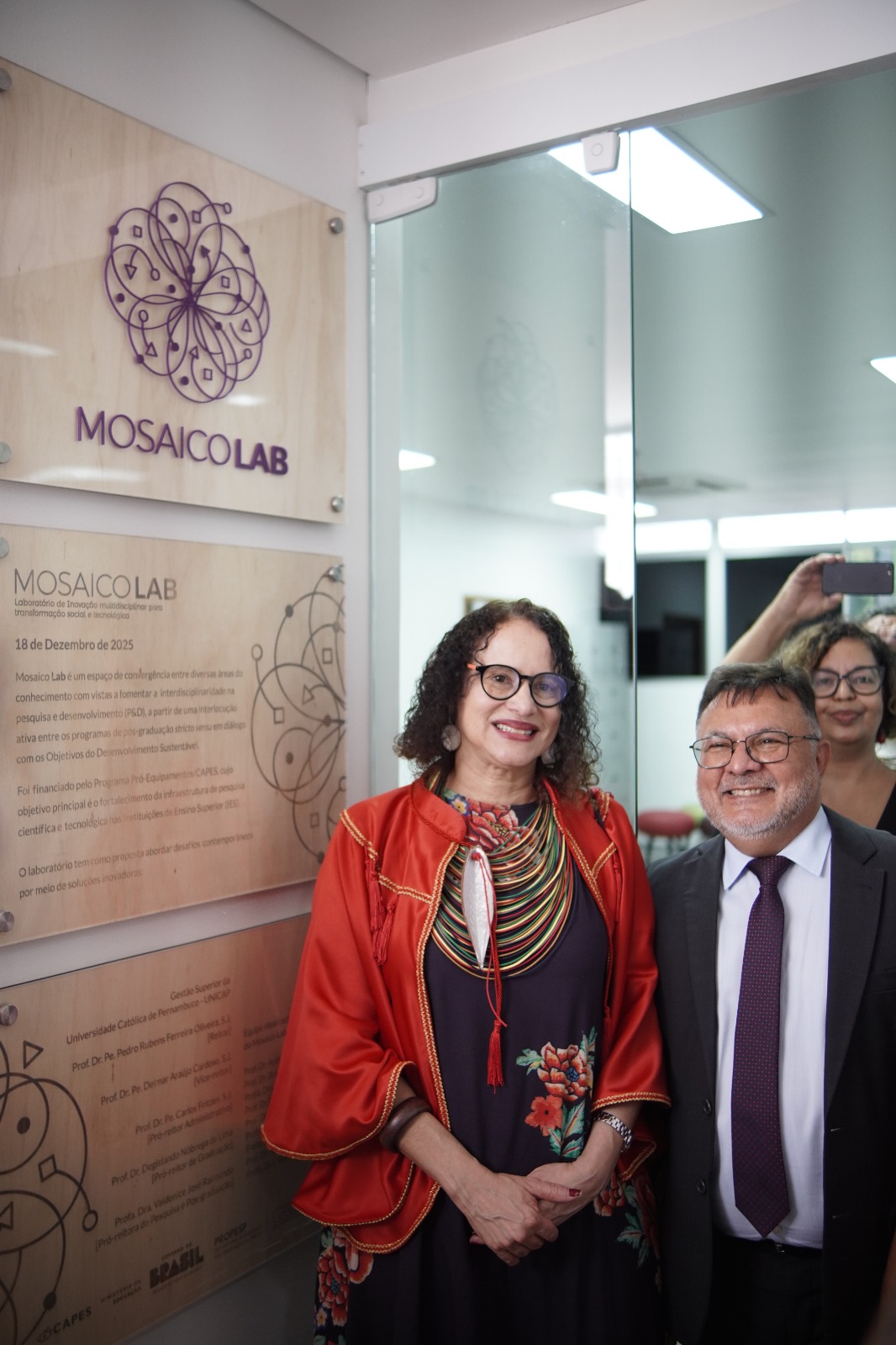 Pelo campus – Após a solenidade, a homenageada descerrou a placa de inauguração do MosaicoLabs, o laboratório multiusuário da Unicap inaugurado no térreo do bloco G4 e ela também assinou um termo de cooperação técnica com a Escola do Consenso, no qual a reconhece como uma ferramenta de inovação social.
