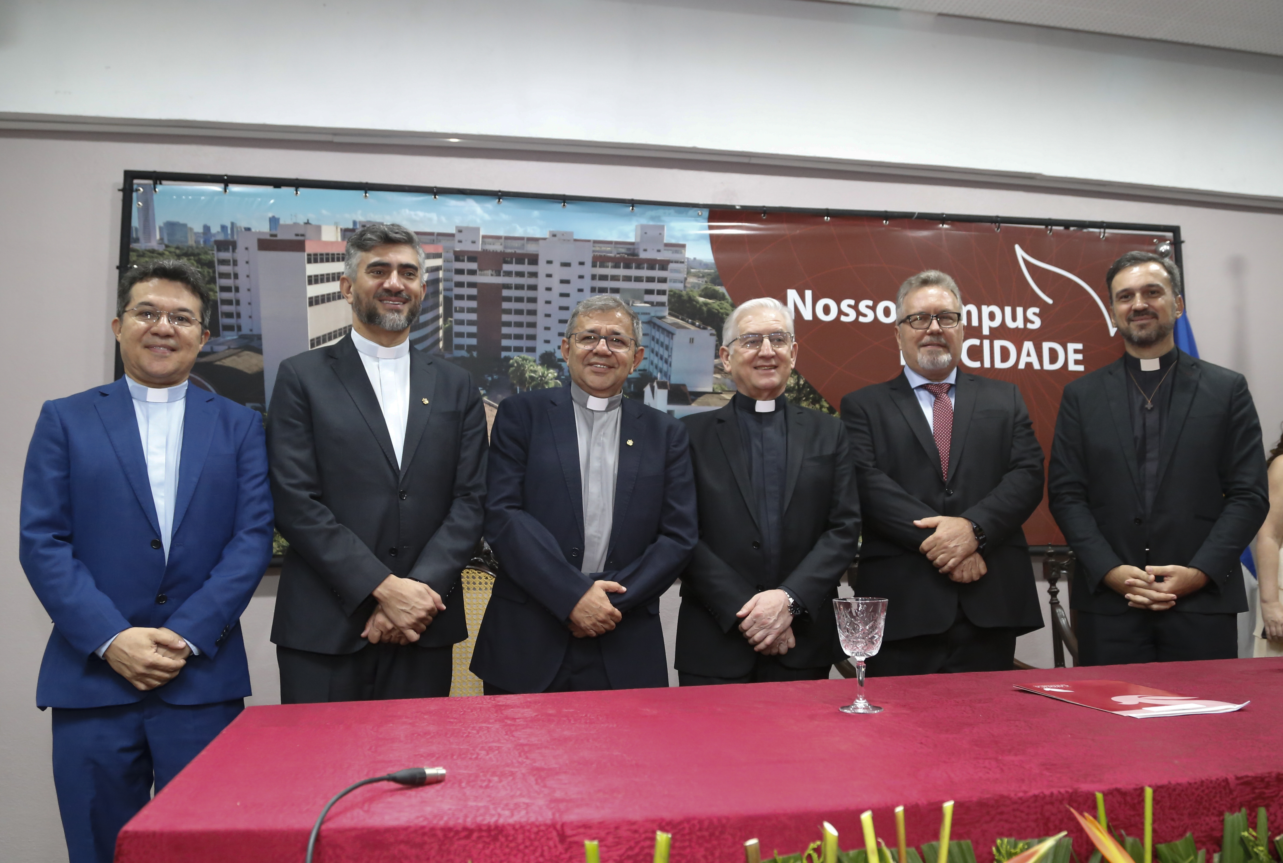 novo Reitor da Universidade Católica de Pernambuco (Unicap), Padre Carlos Fritzen, tomou posse, na tarde desta segunda-feira (2), em uma cerimônia que também celebrou a assinatura de um acordo de cooperação entre a Unicap e a Pontifícia Universidade Católica do Rio de Janeiro (PUC-Rio). A solenidade foi presidida pelo Provincial dos Jesuítas do Brasil, Padre Mieczyslaw Smyda. Compuseram a mesa de honra também o Reitor da PUC-Rio, Padre Anderson Pedroso, e a Reitora da UniFafire e presidente da Associação Brasileira das Universidades Comunitárias (Abruc), Irmã Maria das Graças Soares da Costa.