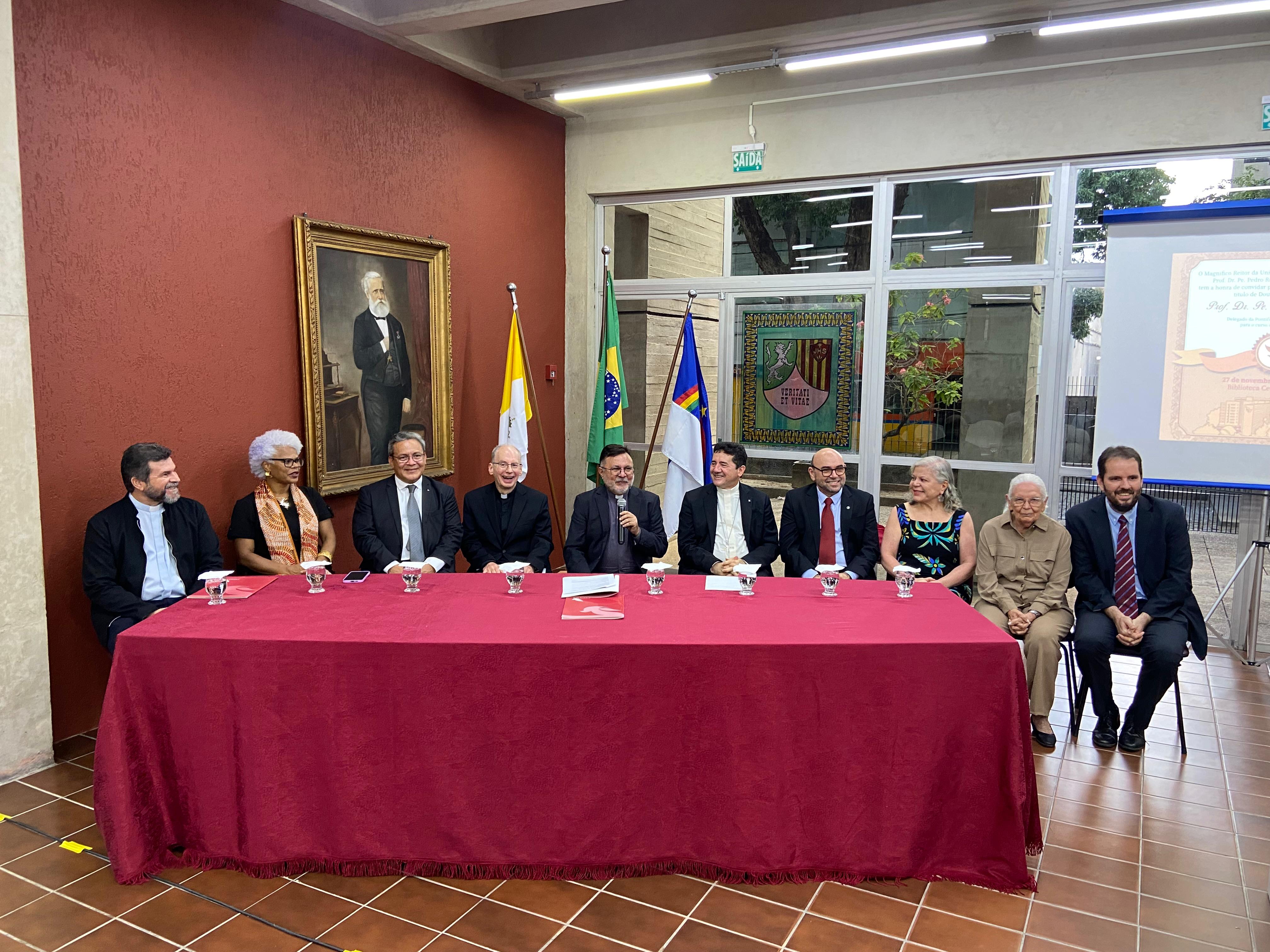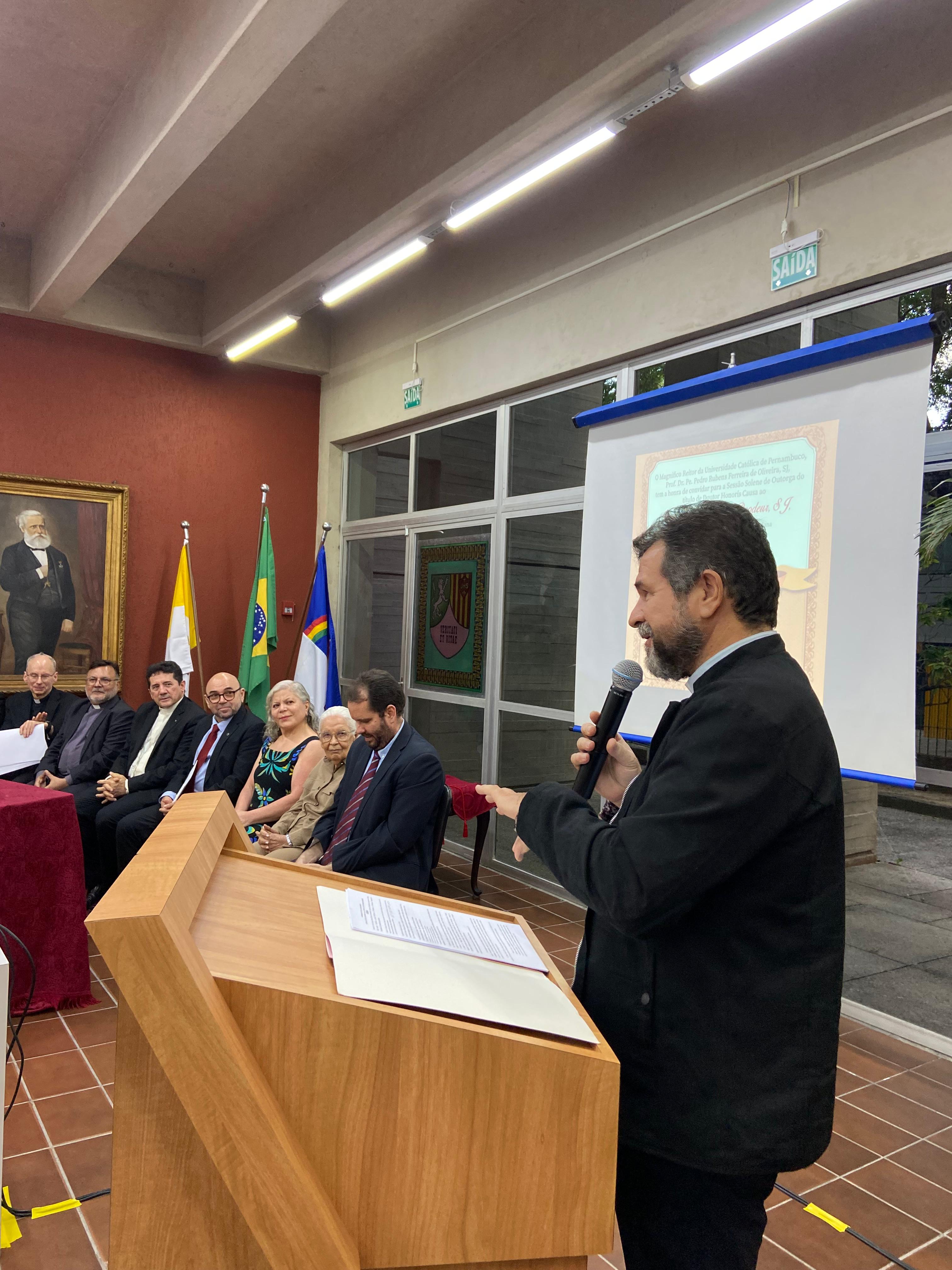 Padre Pedro reforçou a dimensão espiritual da homenagem, lembrando que a tradição jesuíta sempre esteve comprometida com a formação integral: “Reconhecer Scott Brodeur é reconhecer a força do pensamento que serve à fé e à justiça. É reafirmar que a missão educativa é inseparável da missão evangelizadora.”