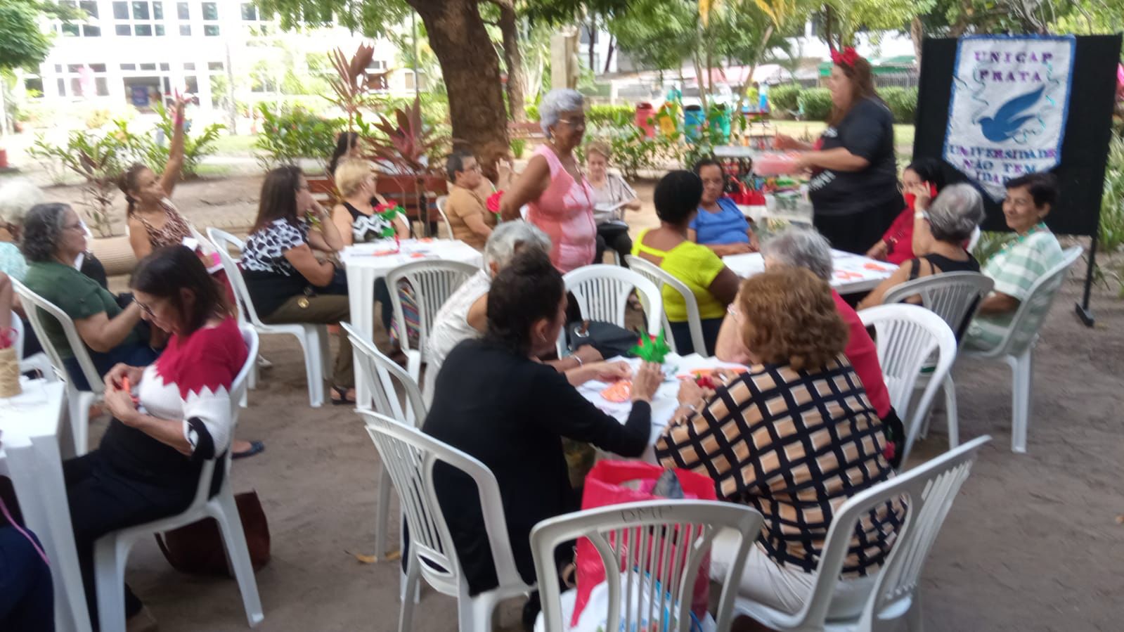 Na tarde desta sexta-feira, o jardim da biblioteca da Universidade Católica de Pernambuco (Unicap) ganhou vida com uma vibrante oficina de produção de flores artesanais, promovida pelo programa Unicap Prata, mantido pela Pró-Reitoria de Pesquisa e Pós-Graduação (Propesp). Os participantes, todos com mais de 50 anos, desfrutaram de uma tarde enriquecedora, repleta de vivências e trocas de experiências ao lado da facilitadora Sara Lima, aprendendo técnicas para confeccionar flores e outros objetos artesanais com criatividade e habilidade.