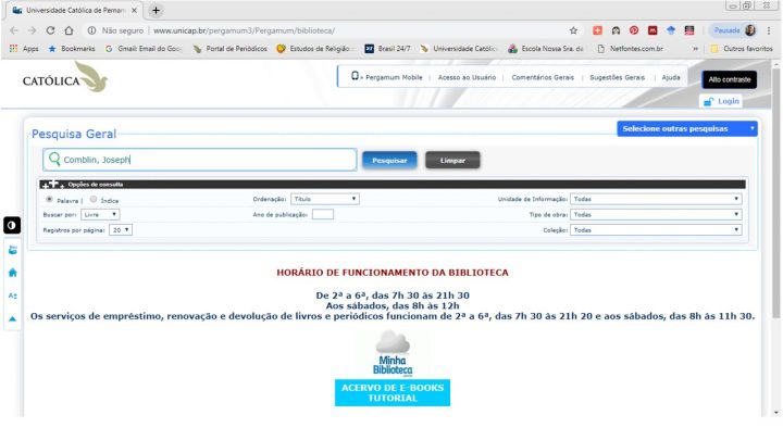 Em breve, após o processo de digitalização, estaremos disponibilizando todos esses dados. Todavia, já é possível ter acesso a, pelo menos, 4.560 títulos. Para isso, basta clicar no banner ao lado, Acervo Comblin na Unicap, na busca, digitar: “Comblin, Joseph” e acessar, como exemplificado na imagem abaixo.