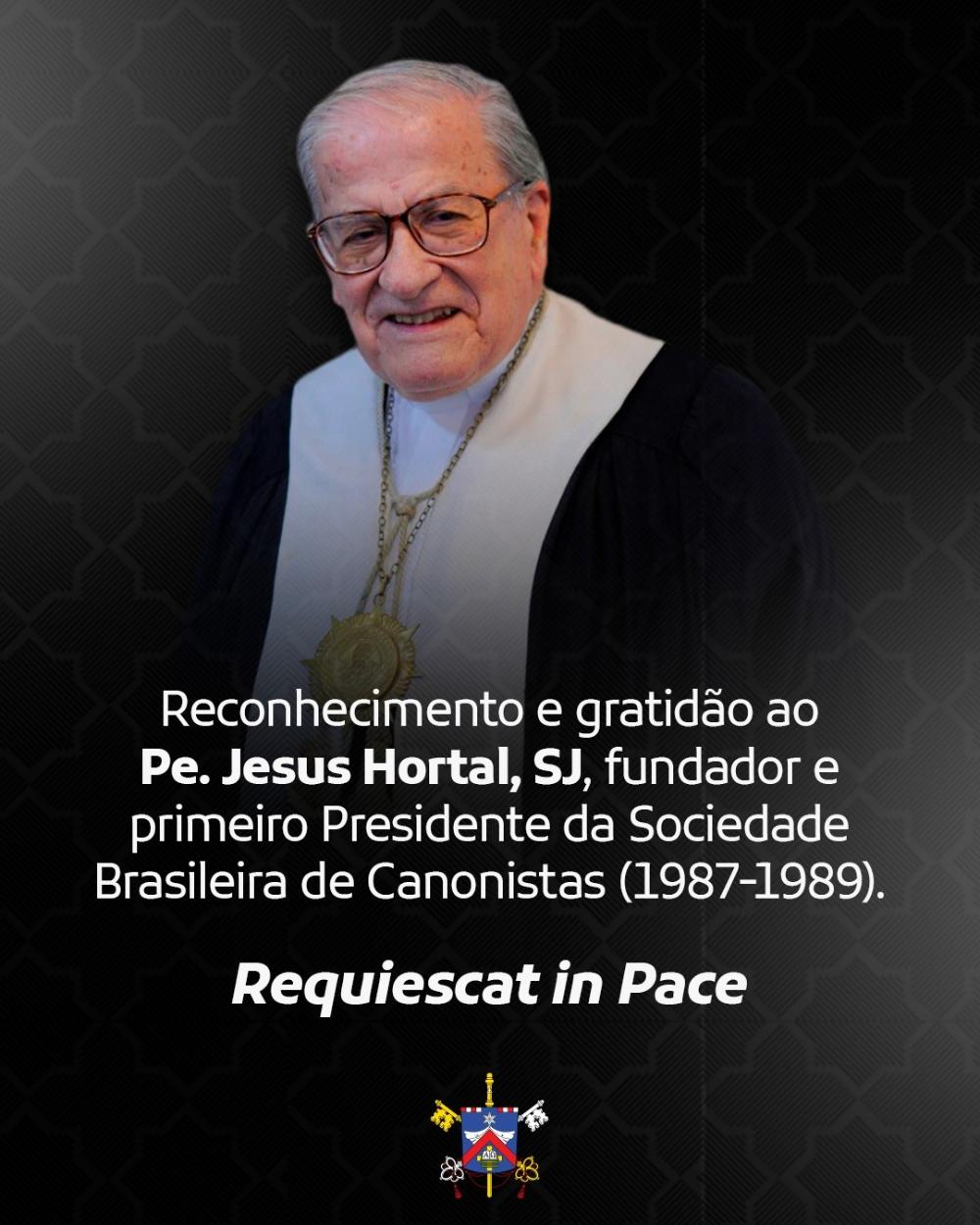 O Instituto Superior de Direito Canônico lamenta profundamente o falecimento do Padre Jesús Hortal Sánchez, S.J., sacerdote jesuíta, teólogo, canonista, educador e ex-Reitor da PUC-Rio. Nascido na Espanha, o religioso completaria 99 anos no dia 14 de fevereiro.