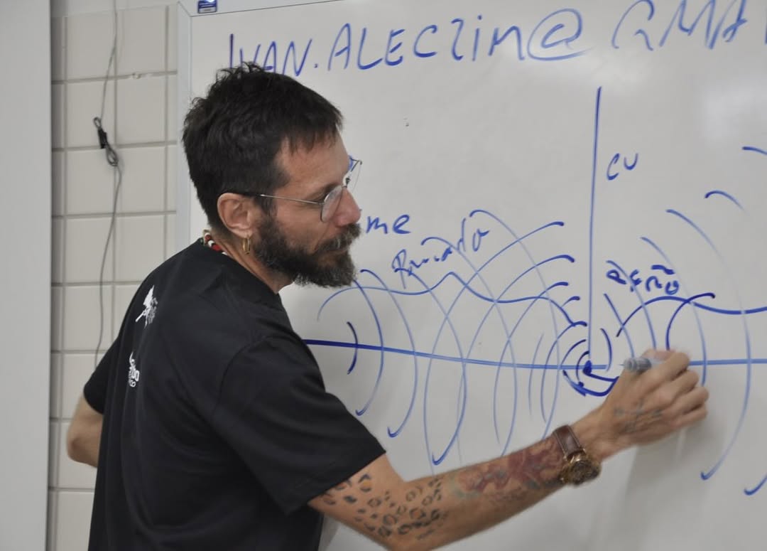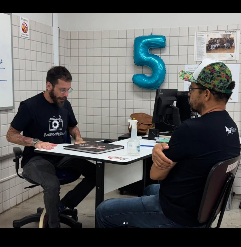 Momento de mentoria generosa, orientando o direcionamento do material fotográfico das pessoas inscritas.