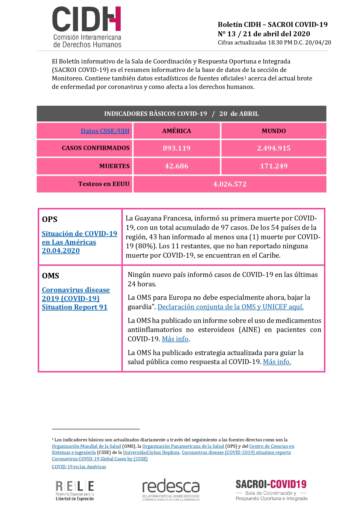 BOLETIM 13 CIDH - COVID 19 - 21/04
