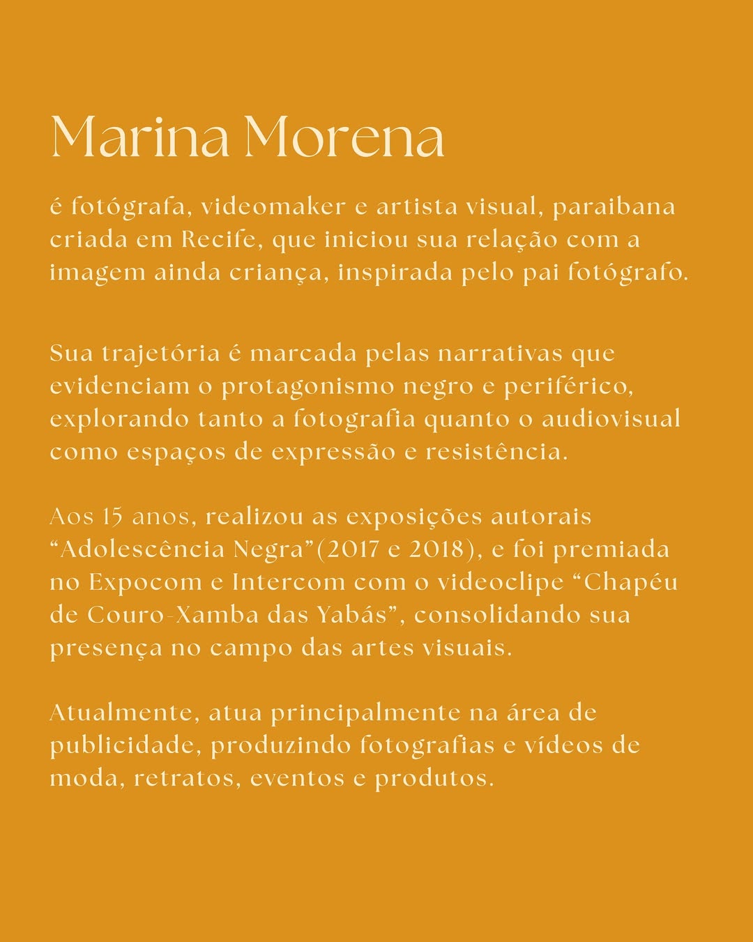 Em sintonia com o realismo mágico, Marina transforma o real em narrativa visual, onnde emoção, memória e imaginação se encontram.